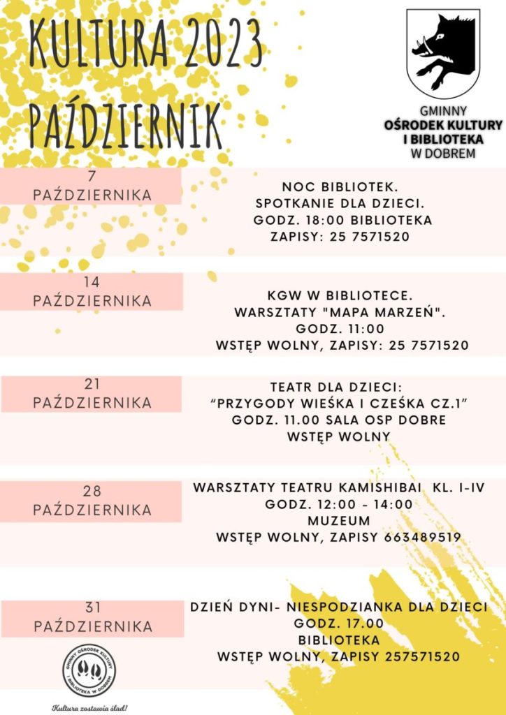 Prezentujemy propozycje na październik. Zapraszamy serdecznie! Zespół Gminnego Ośrodka Kultury i Biblioteki oraz Muzeum K. Laszczki.