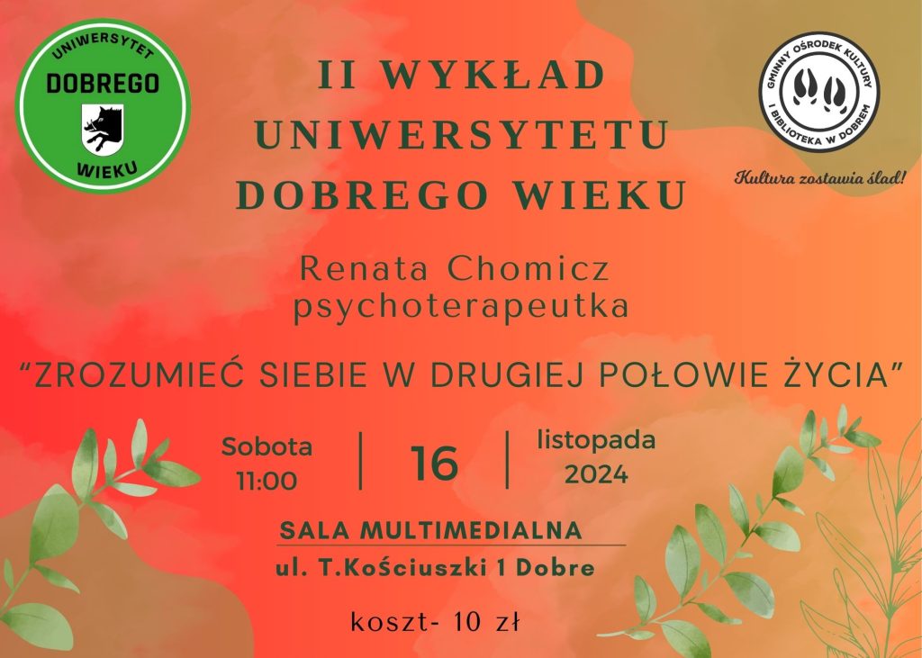 "Przez cały wrzesień Urząd Miasta i Gminy Dobre oraz Gminny Ośrodek Kultury i Biblioteka w Dobrem ( GOKiB) zapraszają do zapisów do Uniwersytetu Trzeciego ( Dobrego ) Wieku.