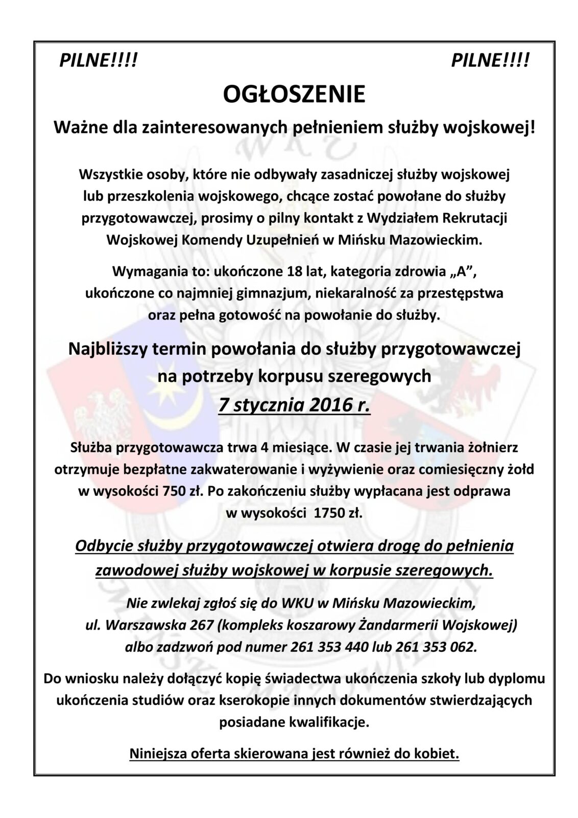 Ogłoszenie dla zainteresowanych pełnieniem służby wojskowej