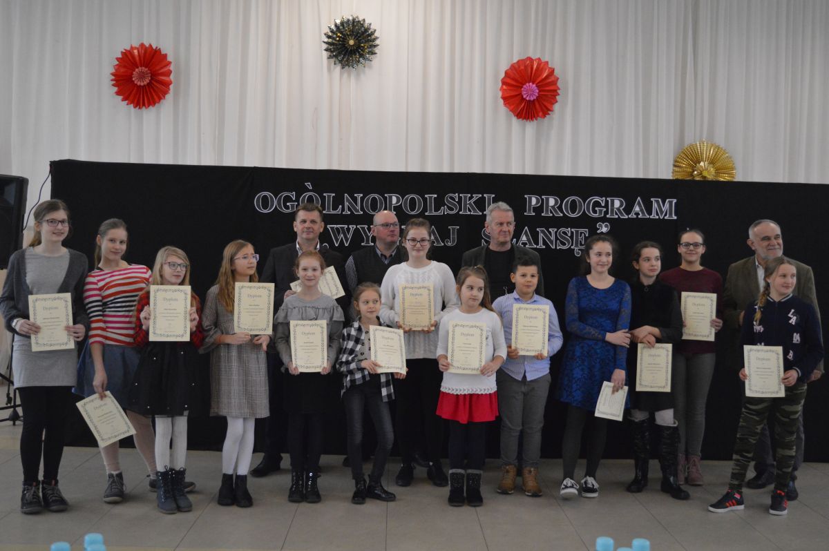 „Co ja w Tobie widziałam” śpiewały uczestniczki eliminacji gminnych do Ogólnopolskiego Konkursu Wokalnego pt. „Wygraj Szansę”, uczestnik zaś wykonał utwór pt. „Dozwolone od lat osiemnastu”. W eliminacjach wzięło udział trzynastu uczestników z trzech szkół z naszej Gminy, ale numeru trzynaście nie było! Wszystkie wylosowane numerki oznaczające kolejność występów okazały się szczęśliwe, chociaż zwycięzca mógł być tylko jeden. Jury w składzie: Pan Piotr Chmielewski, Pan Mieczysław Osiadacz i Pan Stanisław Halagiera, miało niezwykle trudne zadanie, bo cała trzynastka wypadła świetnie. Ostatecznie zwyciężczynią została Julia Czapska i to ona będzie reprezentowała Gminę Dobre na etapie ogólnopolskim. Gratulujemy i mocno trzymamy kciuki!