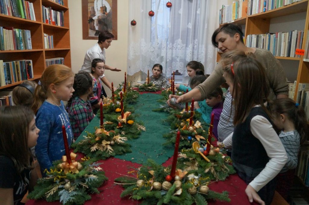 W sali Gminnej Biblioteki Publicznej zorganizowano dla dzieci wspólne robienie dekoracji świątecznych. W ubiegłym roku dzieci uczyły się piec i ozdabiać świąteczne pierniczki.