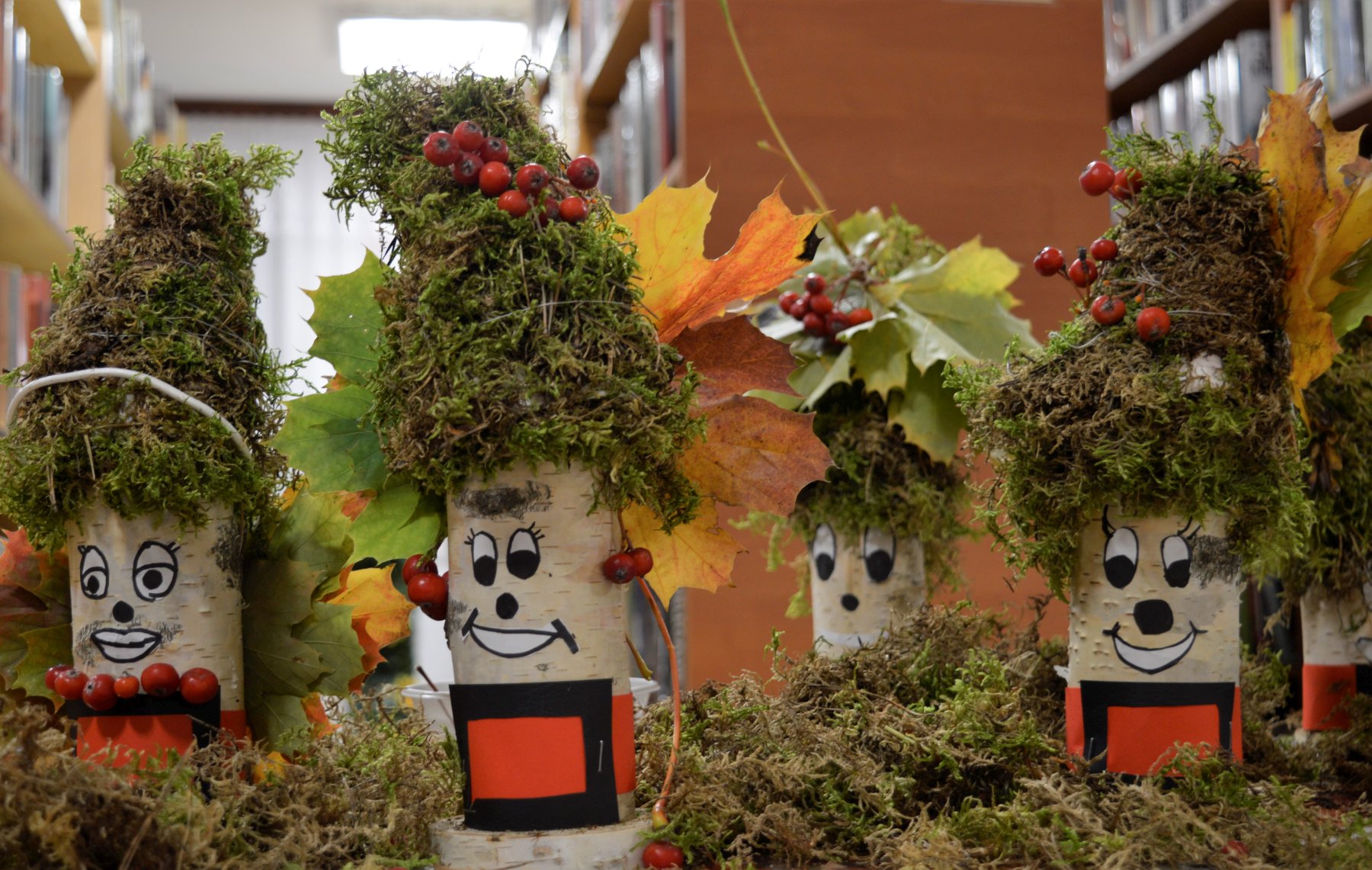 Później każdy uczestnik zabrał się do zrobienia leśnego skrzata. Pracy było dużo, zabawy i śmiechu jeszcze więcej. Na koniec zajęć bibliotekę ogarnął niesamowity zapach szarlotki, którą dzieci wspólnie zrobiły. Po degustacji pysznego ciasta z lodami, jak stwierdziły dzieci, każdy z leśnym skrzatem mógł wrócić do domu.